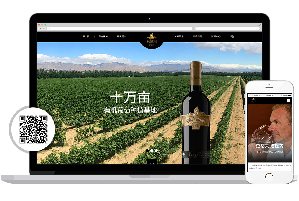 日出東方,其道大光;河出伏流,一瀉汪洋,這樣壯美的歲月孕育了一片神奇的土地——賀蘭山東麓。這里有一顆璀璨的明珠——寧夏德龍十萬畝有機葡萄產業園。寧夏德龍十萬畝有機葡萄產業園與法國波爾多同處于北緯38.5度,世界釀酒葡萄黃金生長帶,具備了種植最好釀酒葡萄所需要的一切氣候條件。海拔1100米,土壤是經過幾億年風雨形成的砂石與泥土混合洪積扇沖擊平原,石礫與灰鈣土各占50%的構造使其含有豐富的礦物質,通透性好,日照時間每年約3000小時左右、晝夜溫差10—16℃,年降雨量150-200mm、二氧化碳濃度高達370ppm,光合作用強,如此環境生長出的釀酒葡萄皮厚、糖分充足、單寧飽滿;賦予了德龍賀蘭神國際酒莊獨一無二的優勢。